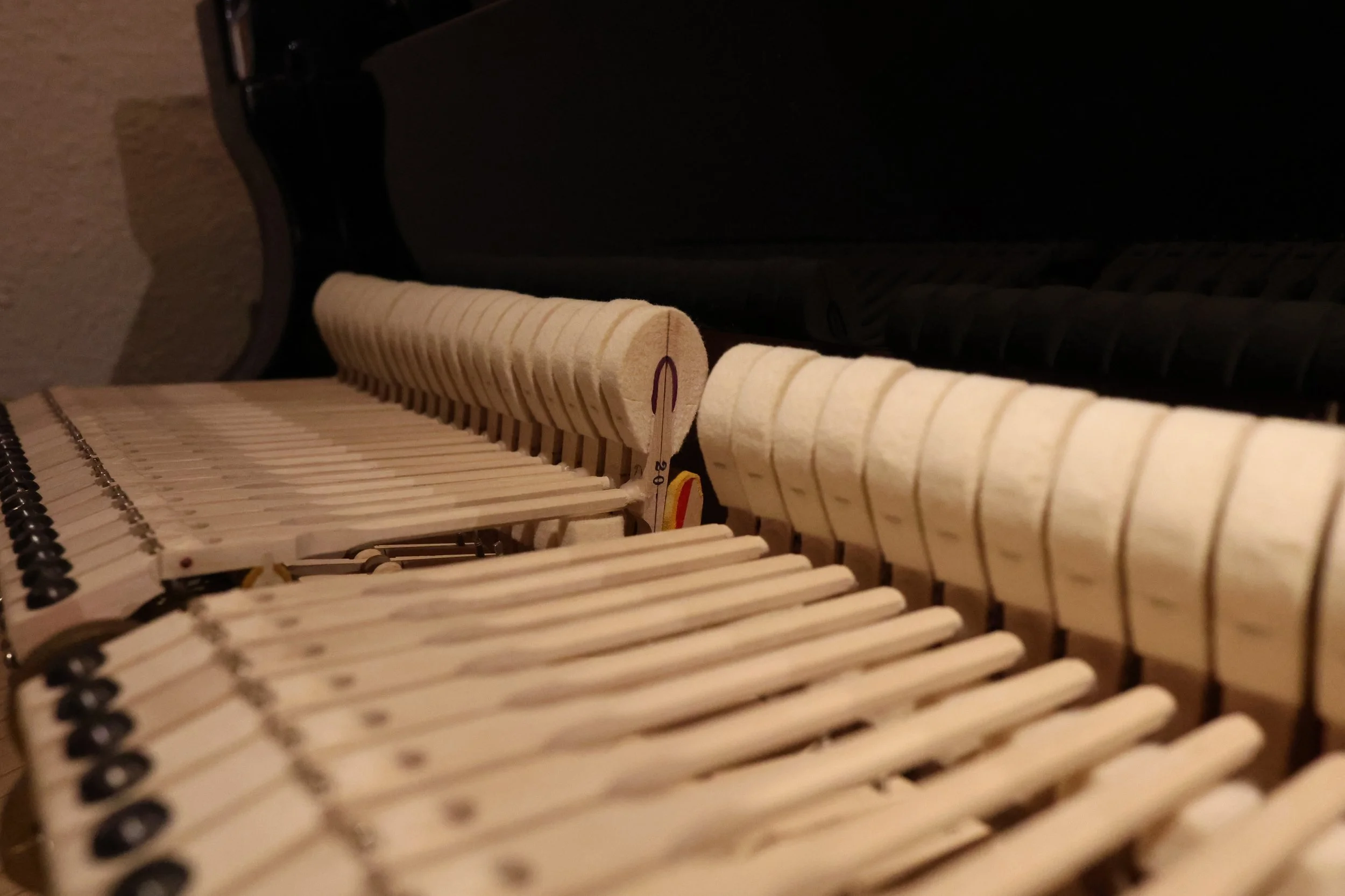 Regulation is the process of making sure that the piano “action” (the moving components inside the piano) are at the optimum performance level to ensure even and fluid playability in the instrument. There are hundreds of adjustments and over ten thousand moving parts inside a piano that each need to be adjusted to critical tolerances to be able to respond to your playing.